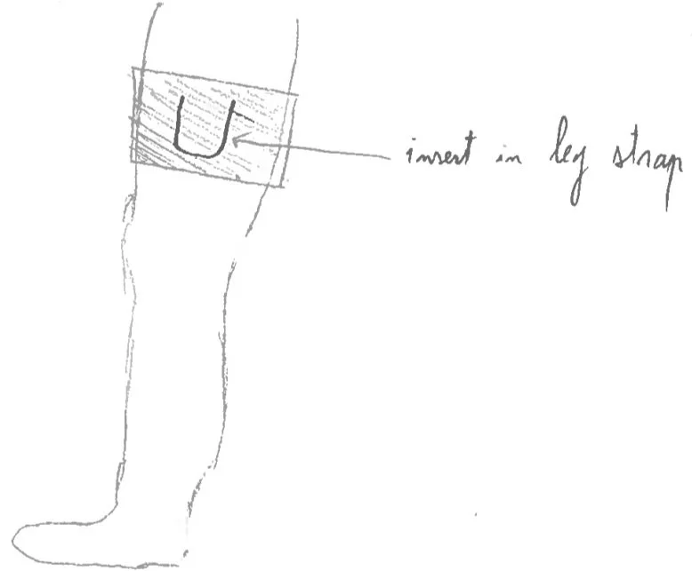 Three ideas that use some kind of insert to give directions. First is in front pocket or in sleeves, second is on the shoe, third is in a leg strap.